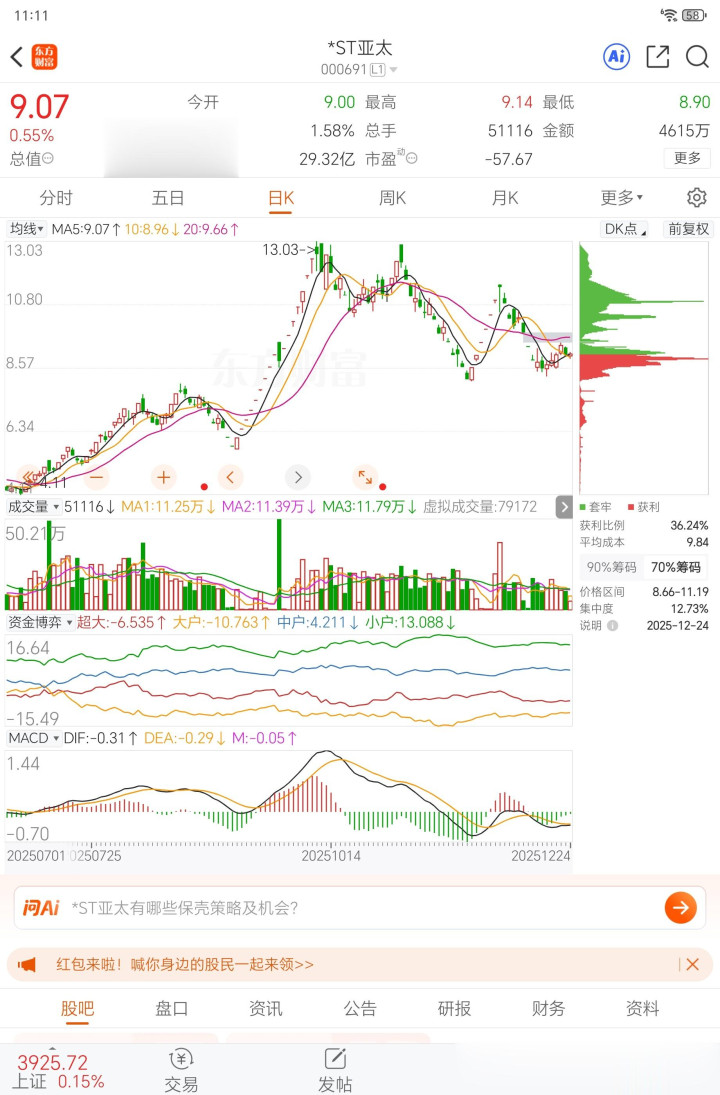 ST亚太在高位盘整时,我看不少ST老师分析,说它有航空航天概念,还是当地市长牵头推进重整,成功率特别高。结果到了预期的重整获批日期,一直没等来消息,股价立马一路大跌,我直接吃了大面,之前赚的全吐回去了,刚割肉卖出,它又反转开始一字板上涨,别提多悔了。