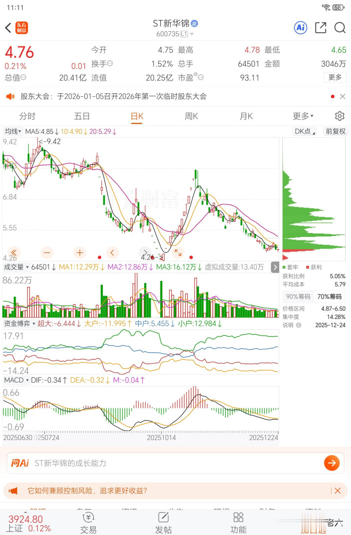 这几个月玩ST的日子,真是让我夜夜难眠,不是因为大涨兴奋得睡不着,就是因为大跌懊悔得睡不着,更多时候是提心吊胆到天亮。还好最近把所有ST股都清仓了,这个小账户也彻底不玩了。回头看大账户里持有的那些“老登股”,心里莫名踏实。虽然涨得慢,但稳稳当当,每年分红准时到账,企业经营也井然有序,就算有波动,也绝不会像ST股那样腰斩甚至直接退市。